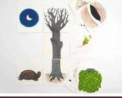 Designed by Bruno Munari and Giovanni Belgrano in 1975, Transformations is composed of 60 cards to be placed horizontally or vertically to create sequences of always new and unique images. Animals seen from near and far, leaves and roots of trees, flowers, acorns can be combined in many different ways, assembling and disassembling them. One card after another, you can take endless directions, for example climbing from an underground den to the sky in a journey full of surprises. Through the creation of visual stories in continuous transformation, the game develops both linguistic activity and the organization of space.