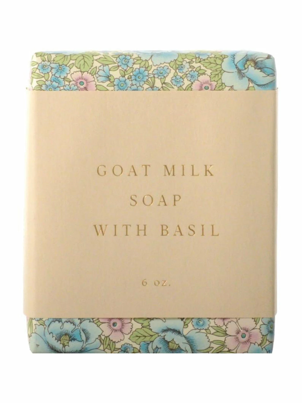 A creamy, soothing soap suitable for face or body blended with basil essential oil; peppery and sweet with notes of anise. Contains saponified oils of olive, coconut, and castor, with shea butter, goat milk, and essential oils.