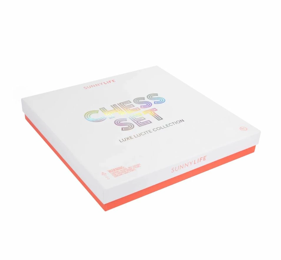 A stylish and colorful SunnyLife chess set, crafted with a modern design in top-quality, transparent lucite.