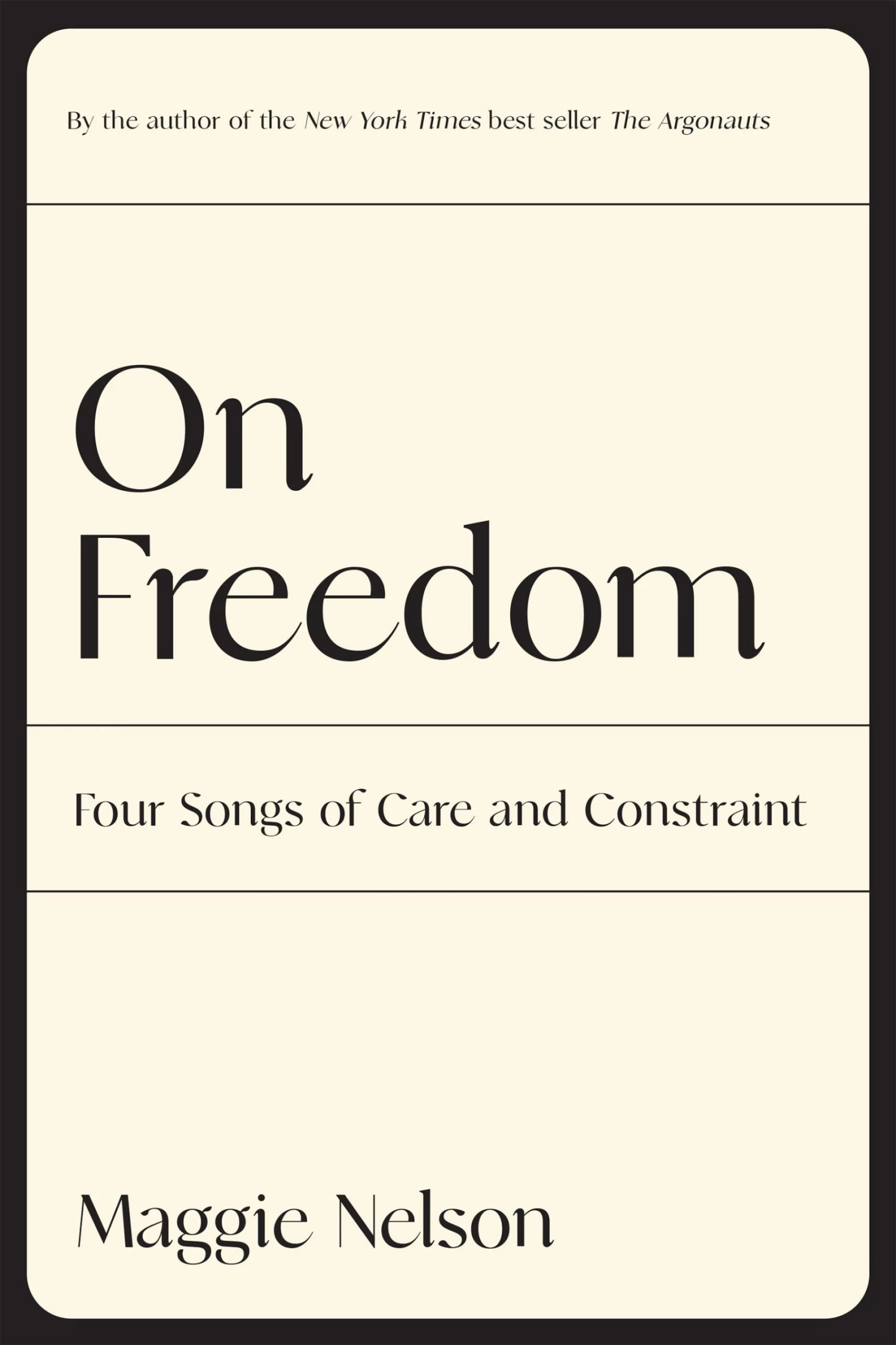 Drawing on a vast range of material, from critical theory to pop culture to the intimacies and plain exchanges of daily life, Maggie Nelson explores how we might think, experience, or talk about freedom in ways responsive to the conditions of our day. Her abiding interest lies in ongoing “practices of freedom” by which we negotiate our interrelation with—indeed, our inseparability from—others, with all the care and constraint that entails, while accepting difference and conflict as integral to our communion.