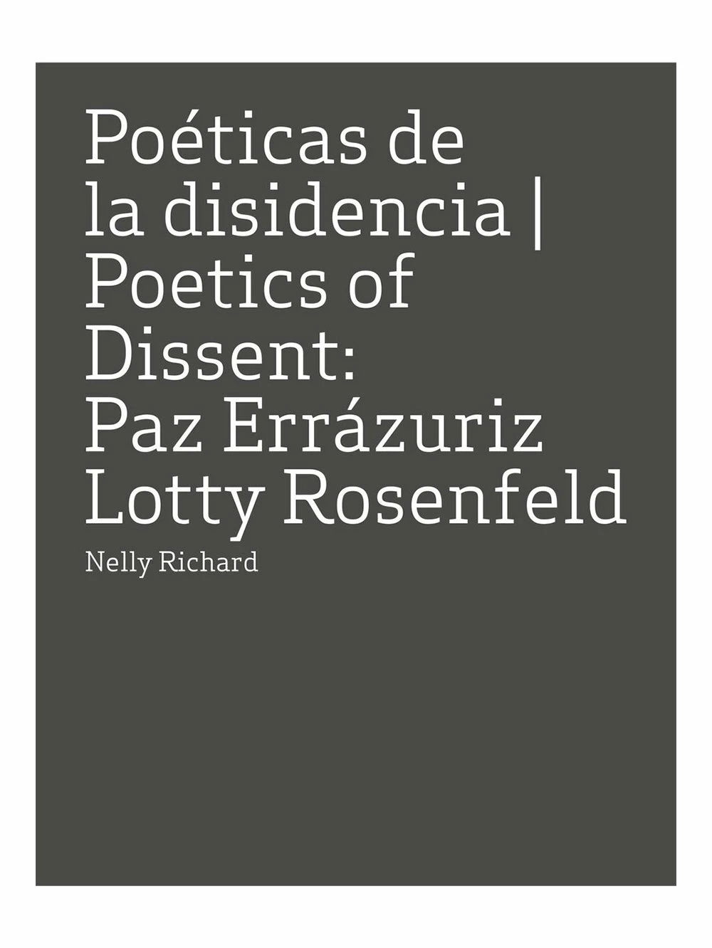 The Chilean Pavilion at the 56th Venice Biennale presents Chilean artists Paz ErrΓ‘zuriz (born 1944) and Lotty Rosenfeld (born 1943), both recognized for their artistic and political work during the dictatorship. This book discusses ErrΓ‘zurizβs black-and-white photography and Rosenfeldβs interventions in public spaces.