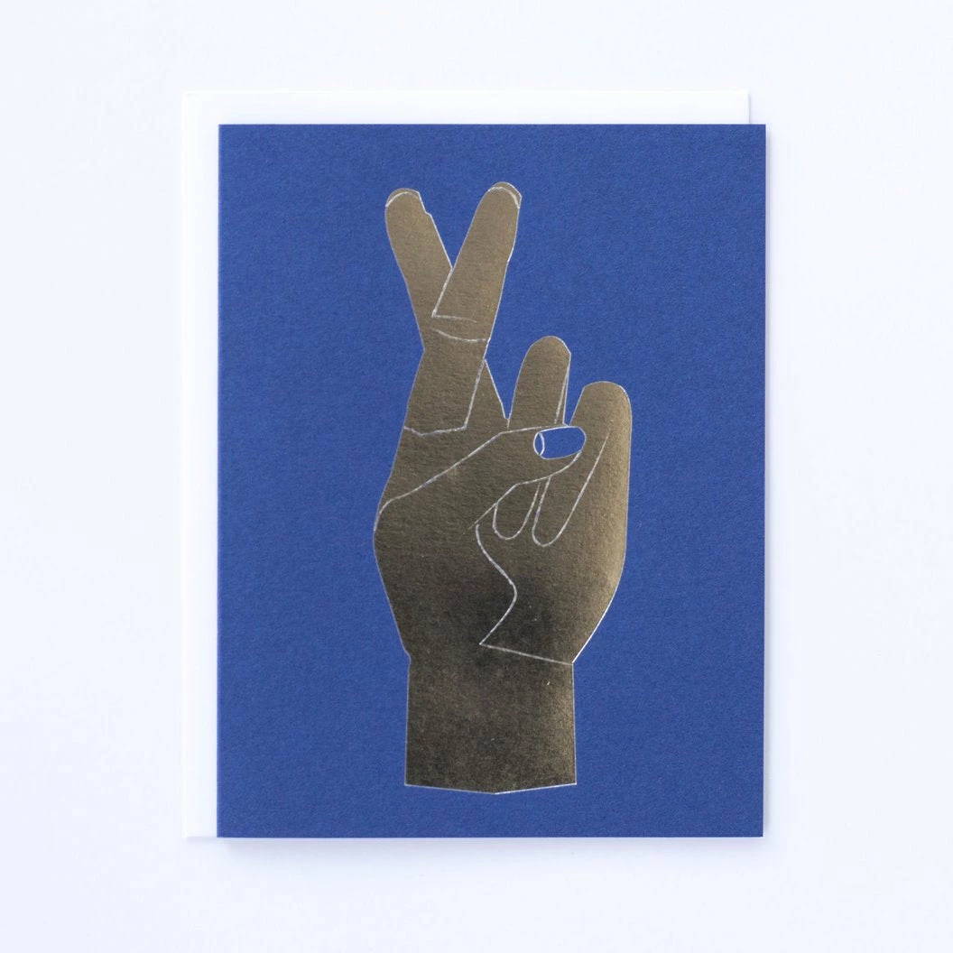 A great Thinking of You, Best of Luck, Here’s to the Future kind of card. Gorgeous metallic silver foil crossed fingers on a dreamy royal blue card stock.